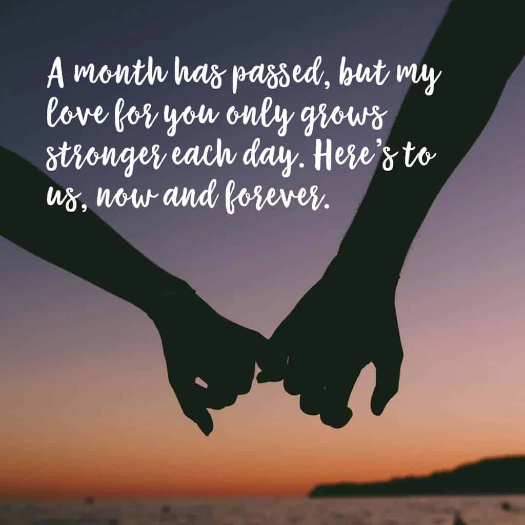 Taking a moment to say “Happy one month anniversary” may feel simple, but it shows your partner that every day with them matters to you.