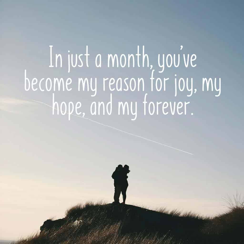 - 💖 “Happy one month with my favorite person! Here’s to us and all the love in the world.”